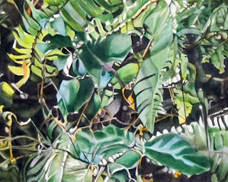 But when the pen and ink was applied to the 300 lb water color paper--without allowing time to stop or edit the painting--a very different energy emerged.