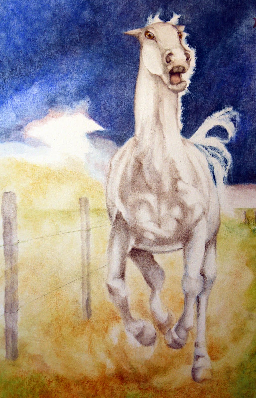 Yet we are inside the enclosure with the charging horse, who appears to running from fright more than toward harming us,